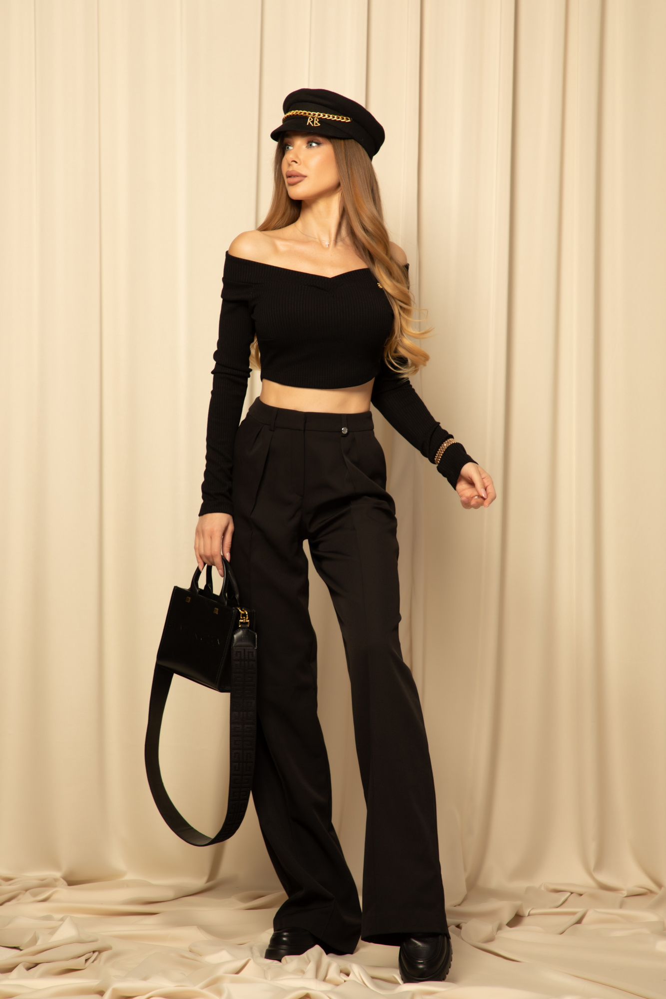 Ribbed Serenity Κροπ-Τοπ Με Ντεκολτέ Βάρκα - Black