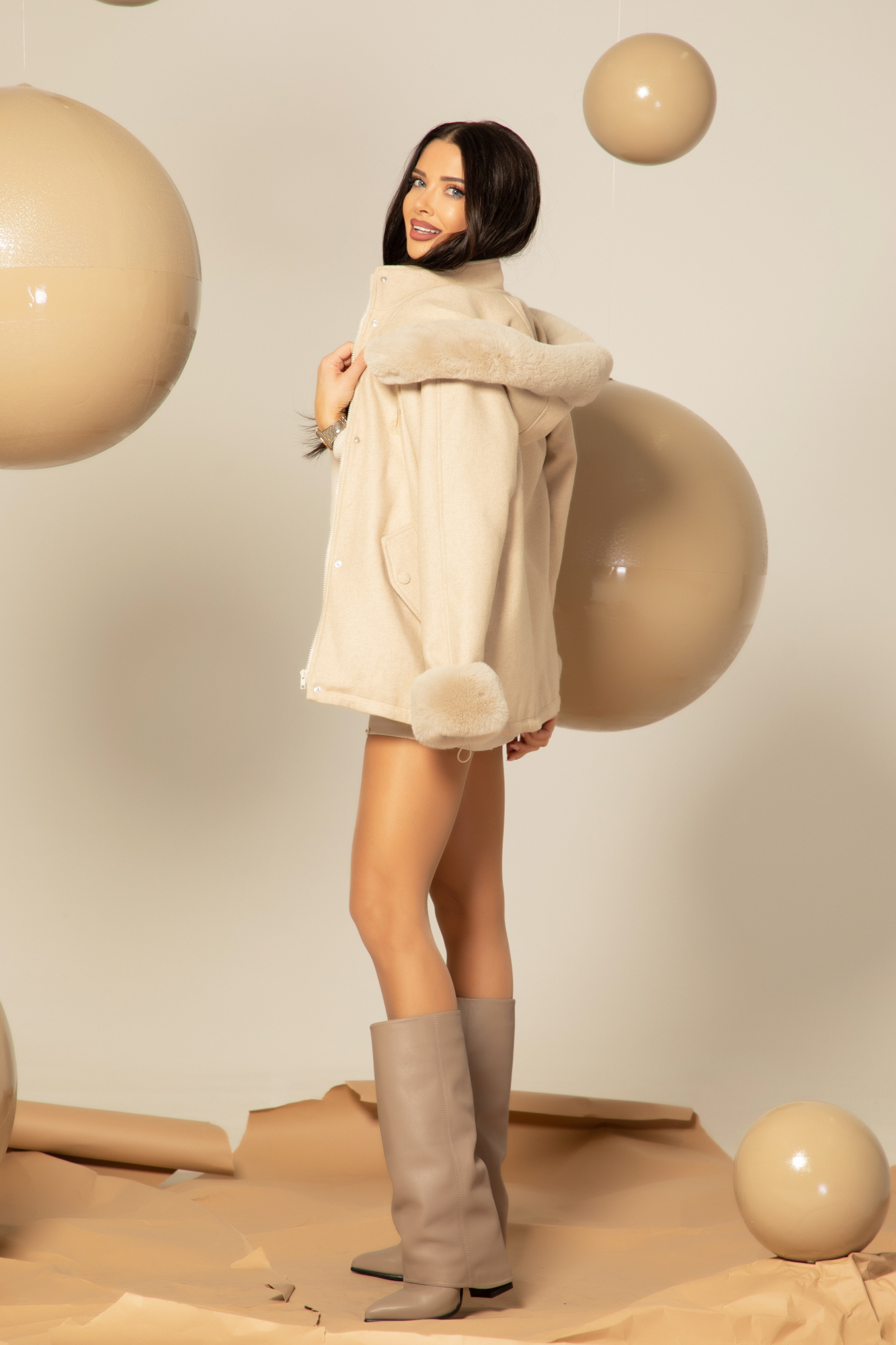 Winter Pulse Χειμωνιάτικο Μπουφάν Από Κασμίρ - Soft Beige